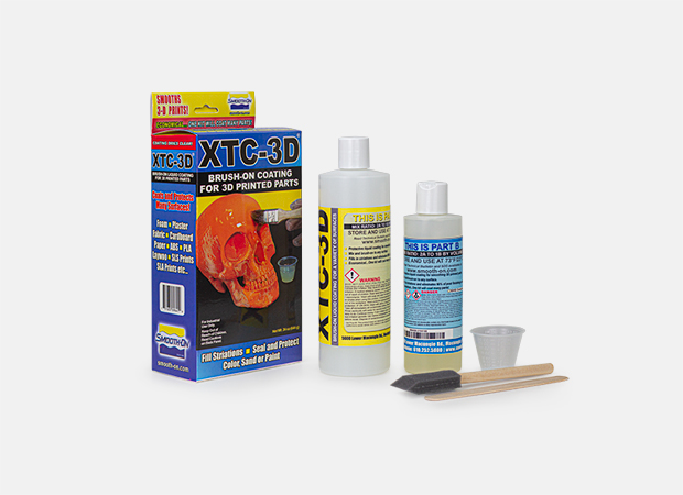 XTC-3D представляет собой эпоксидный состав для создания гладкого защитного покрытия и в качестве отделки 3D частей. Две жидкости смешиваются и наносятся кистью на 3D отпечатанное изделие. Покрытие самовыравнивается и равномерно "смачивает" поверхность не оставляя следов от воздействия кисти. Рабочее время системы – 10 минут, время отверждения составляет около 4 часов (в зависимости от массы и температуры). XTC-3D отверждается в твердое, ударопрочное покрытие, которое может быть отшлифовано, загрунтовано и окрашено поверхностно. Смесь легко окрашивается и наполняется в т.ч. металлическими пудрами.