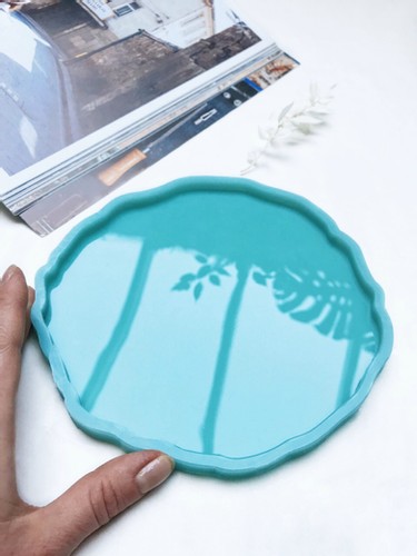 Силиконовая форма для изготовления круглых подносов из эпоксидной смолы.